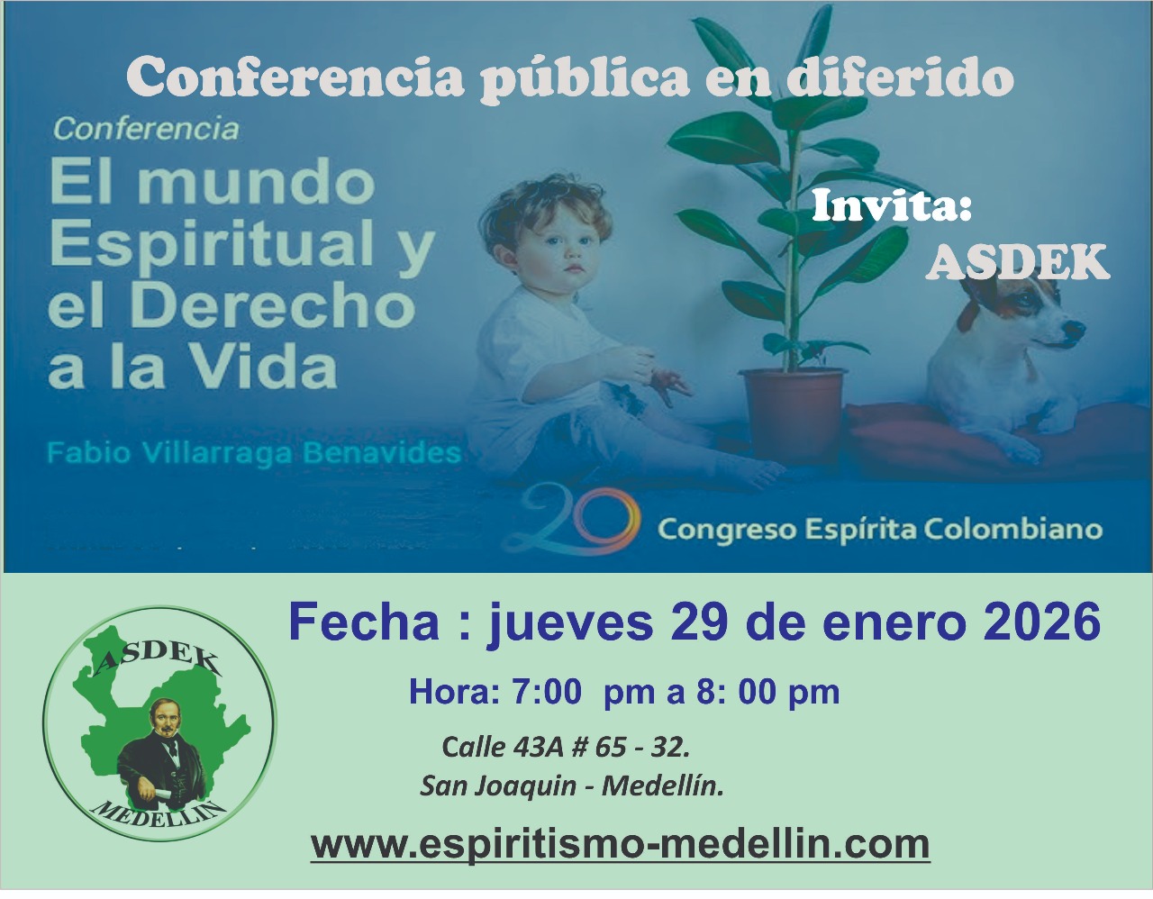 Te esperamos el proximo jueves 29 de enero de 2026, en la conferencia Publica en diferido - presencial. Dirección de ASDEK: Calle 43a # 65 - 32 sector San Joaquin - Medellín.. |